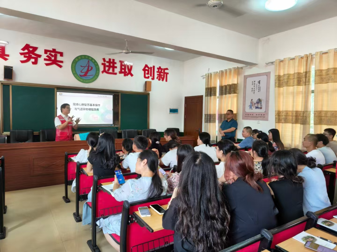 9 月 9 日,醫(yī)院導(dǎo)師團隊走進中路鋪中學(xué),為師生們詳細培訓(xùn)心肺復(fù)蘇、海姆立克急救法等急救技能,以及中暑、溺水、一氧化碳中毒等常見急癥和突發(fā)意外的處理方法。通過培訓(xùn)考核的人員,獲得湖南省緊急醫(yī)學(xué)救援培訓(xùn)中心頒發(fā)的電子合格證書。