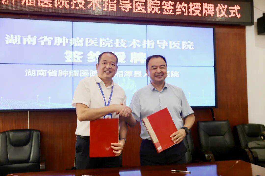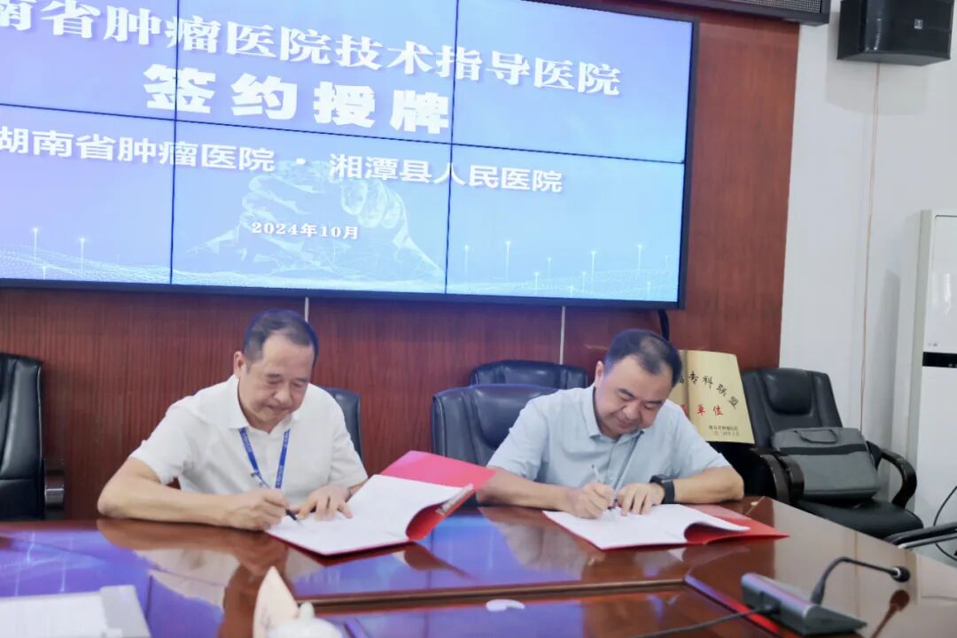 為進(jìn)一步提升縣域醫(yī)療衛(wèi)生機構(gòu)癌癥篩查與早診早治以及規(guī)范化診療能力,10月17日,湘潭縣人民醫(yī)院與湖南省腫瘤醫(yī)院合作共建與專科聯(lián)盟簽約儀式在我院隆重舉行。