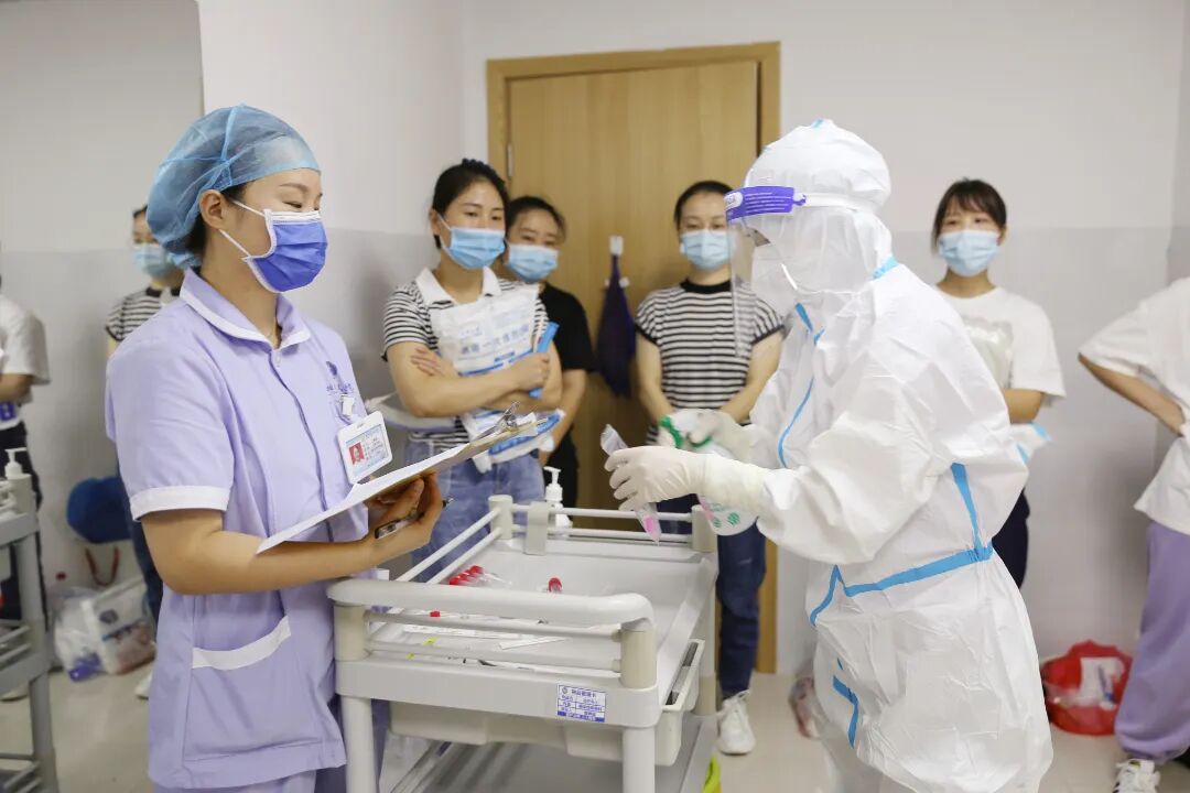 進(jìn)行現(xiàn)場實訓(xùn)考核,每組由兩位培訓(xùn)老師嚴(yán)格把關(guān),對手衛(wèi)生、穿脫防護(hù)服、鼻咽和口咽拭子采集技術(shù)進(jìn)行了逐一訓(xùn)練和考核。
