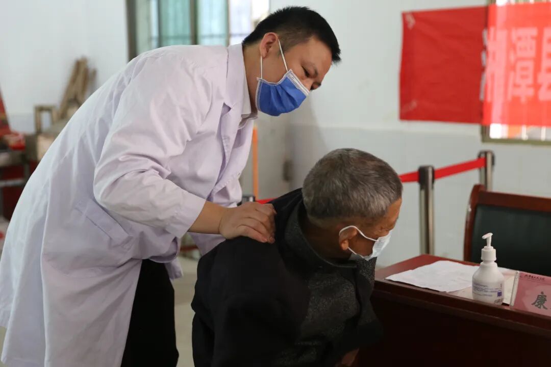 村民程大爺,74歲,近幾年坐骨神經(jīng)疼痛并延伸到大腿后側(cè),康復(fù)醫(yī)學(xué)科副主任、副主任醫(yī)師羅志為了解其病情病史后,檢查為腰椎病變引起,現(xiàn)場給他開了對癥治療的藥物,并建議他找村醫(yī)通過針灸按摩等,松弛腰背肌群,疏通經(jīng)絡(luò),平時佩戴醫(yī)用腰圍護腰,多管齊下緩解、消除疼痛。