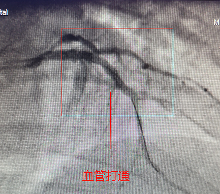 時(shí)間就是生命,患者暫時(shí)脫離了生命危險(xiǎn),但隨時(shí)可能再次發(fā)生心臟驟停,需盡快開通血管,15:22分,在團(tuán)隊(duì)的努力下患者堵塞血管被重新打通,心臟重新恢復(fù)了血液供應(yīng),經(jīng)冠脈內(nèi)溶栓治療后,成功置入心臟支架一枚,造影病變血管通暢后結(jié)束手術(shù)。